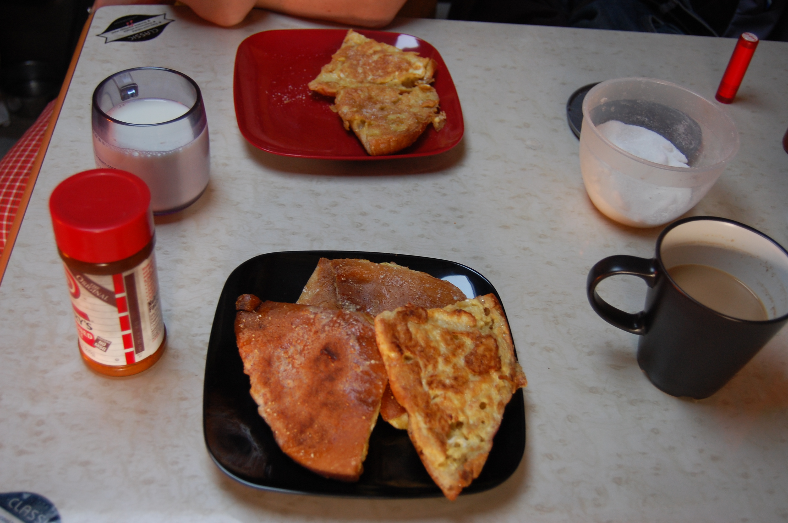 - Eggy bread breaky in the van. Total cost: 7Dh, about 45p.