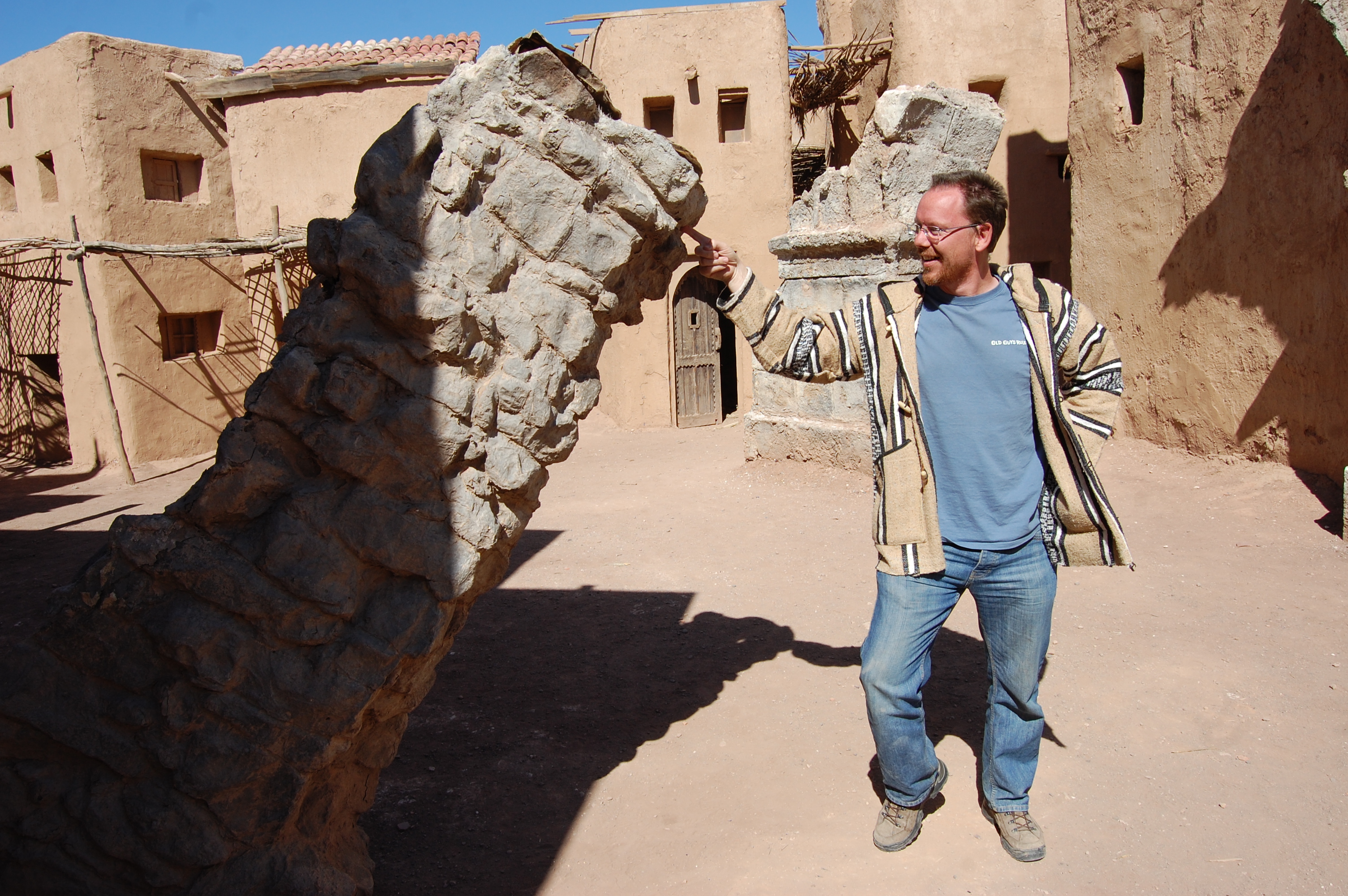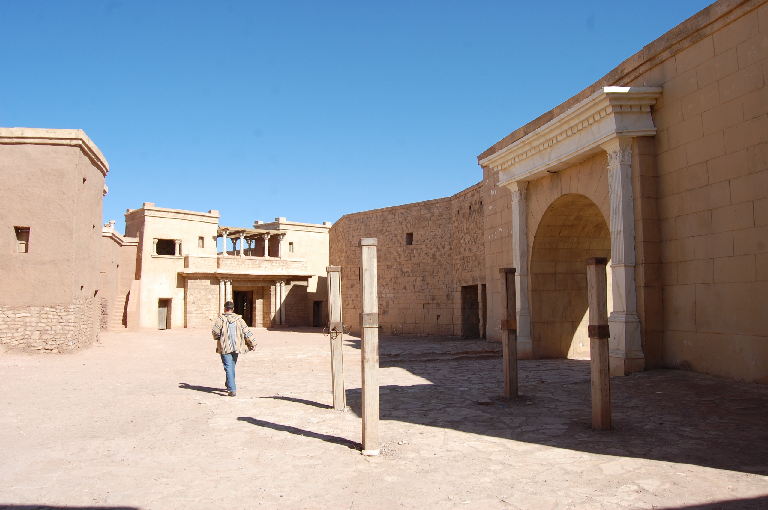 It’s been a day of wandering false worlds. The Atlas Film Studio was a tired old place, seemingly now doomed to slowly die at the hands of the blue screen. The sets were fascinating, realistic (where still in one piece) to the point of touching them, and then the polystyreneness of it all was exposed. The locals made them up to the specifications provided by the Hollywood designers.