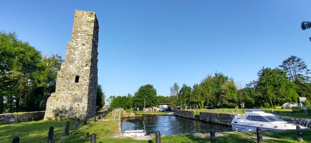 Instead of hammering it straight to Dublin, we picked a marina spot about half way, north of Limerick on Lough Derg. The lough is a huge lake formed on the Shannon River, and we found the parking spot at Garrykennedy on park4night (N52.905108, W8.344865). Tons of positive reviews, in we went. Via a tiny backroad for the last few km, with folks staring at us squeezing past their houses down the elbows-in country lane! The rest of the traffic sensibly took the nice wide(r) road running parallel. I finally remembered I’d switched our satnav off truck to car mode earlier in the trip, as it refused to take us down the more scenic minor roads on the Atlantic peninsulas. Whoops.