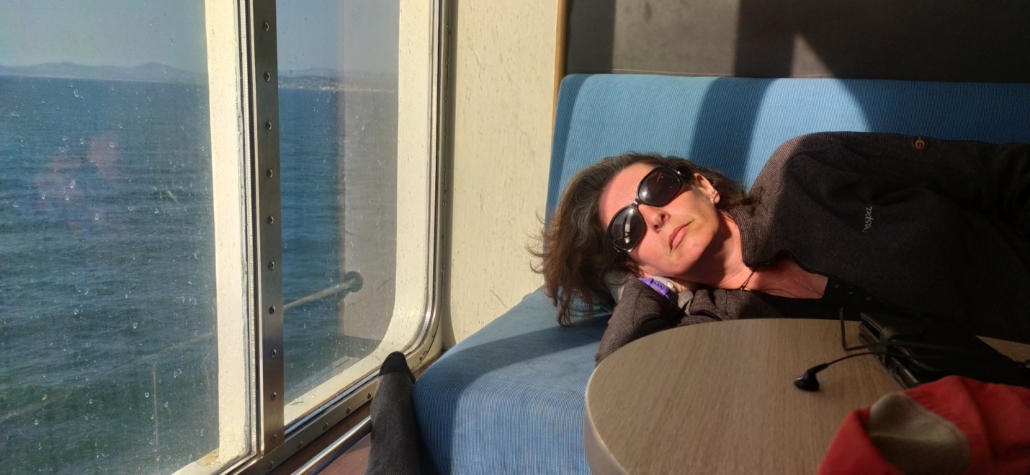 The crossing was perfect. Alongside Ju’s den an American party kept us entertained with a steady stream of stories about the Emergency Room (one was a retired surgeon), affairs they’d had, divorces they’d paid for, therapy sessions, the times they’ve been held up at gunpoint or had their hotel room ransacked, and so on and so on. It was like a real-life soap opera being relayed to us piece by fascinating piece. Most of it would remain unsaid in public by a Brit, for better or worse.