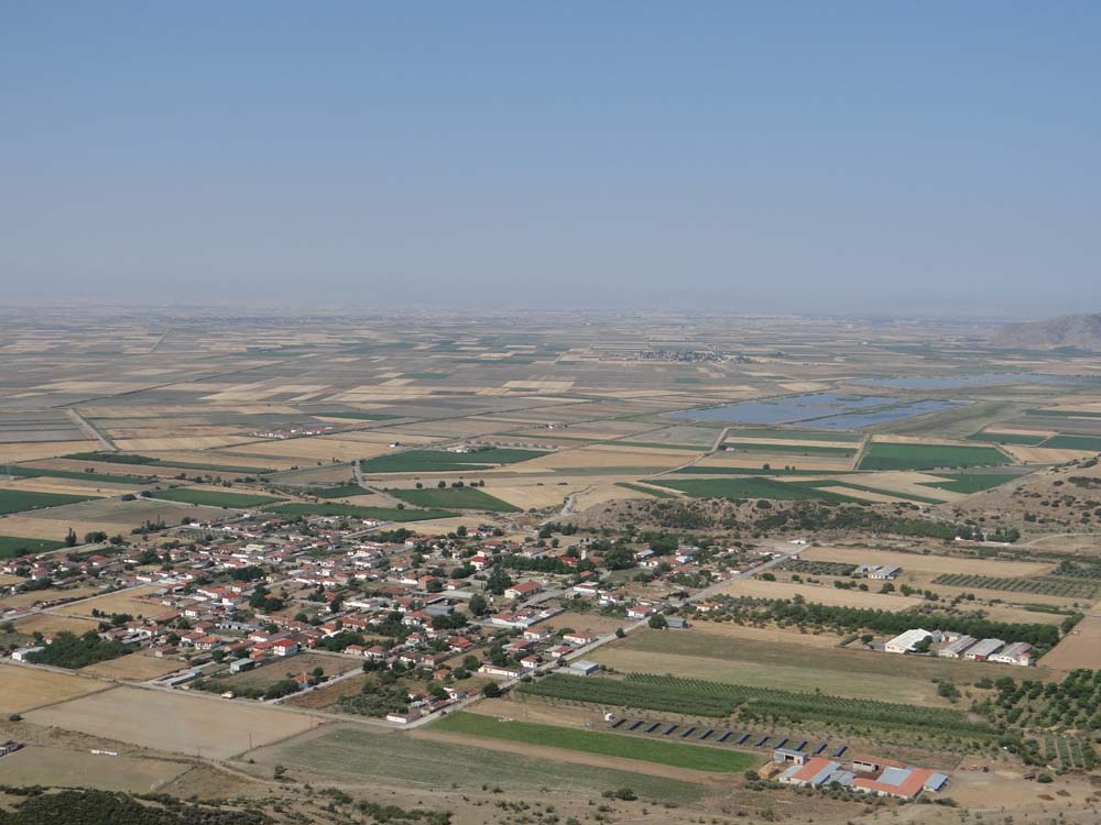 Our aim was to get down to Meteora and get a good few hours of viewing time while we were there, so we’d have some flexibility and could just stay one night if we wanted, instead of two. Our manic rush managed to get us away and rolling off the mountain by about 9:30am, how will we cope with 6:30am starts! Driving off the hillside I found myself pulling Dave over and jumping out to grab photos time and again. The view of the light yellow and green patchwork Thessalian Plain below was eye-catching, and I knew once we were actually in among the fields and towns this aesthetic appeal would be gone.