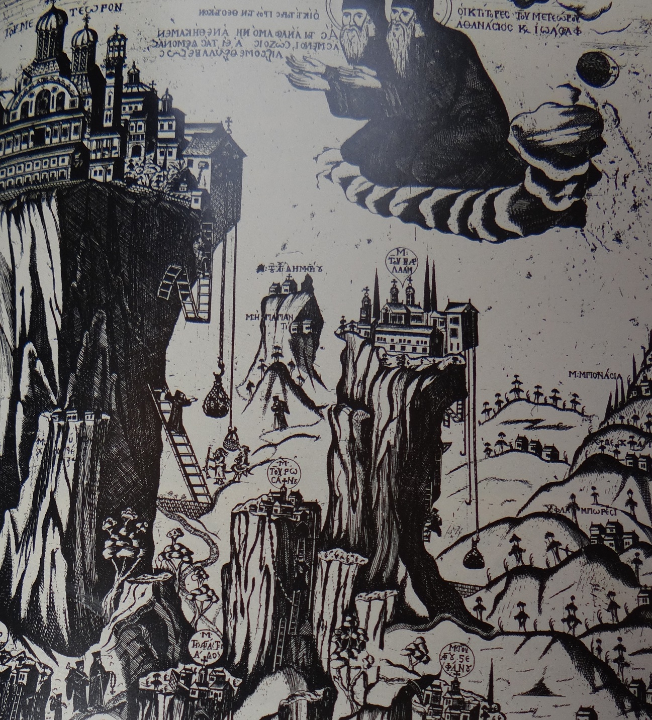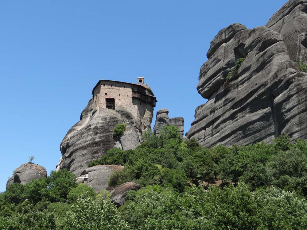 Worse was to come. The buildings remained inaccessible to most folks up until last century, when the need to climb into a rope sack to be hoisted up, or to risk life and limb on a series of ladders attached to the rock face, was done away with. Steps were cut. Give it another fifty or sixty years and James Bond arrives to film ‘For Your Eyes Only’. The monks are less than impressed with the bishop who’s taken the cash to use the place as a film set, lose a court case to stop it, and then do their best to sabotage the shooting (a copy of a monastery had to be built on an unoccupied rock!). After the filming, things got worse.