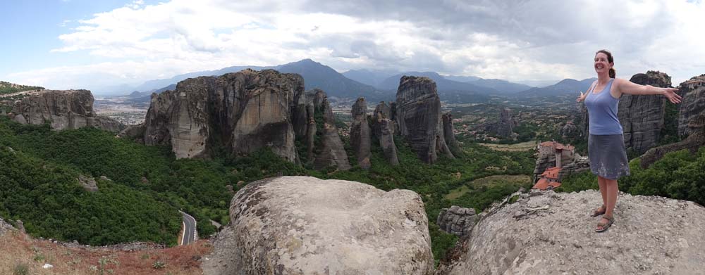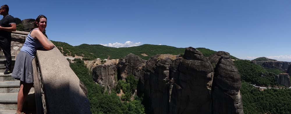 Ju has had Metora on her list of things to see on our tour since we started. I’d no idea what was here until other bloggers we followed reached the place and posted their stories and photos. What’s here is, to use a word which has been given a massive over-use boost today by us two, stunning. Some thousand years back, hermits arrived here and with the help of locals adept at climbing managed to get about as far away from the world they must have come to hate with a vengeance. There are smooth-sided pinnacles of rock here, created by some ancient sea, and the loners succeeded in being seriously alone by finding high enough places which only those crazed enough would climb to and from. Things moved on and 300 years later monasteries started to be built atop these rocks, culminating in a total of 24 of them around 1566.