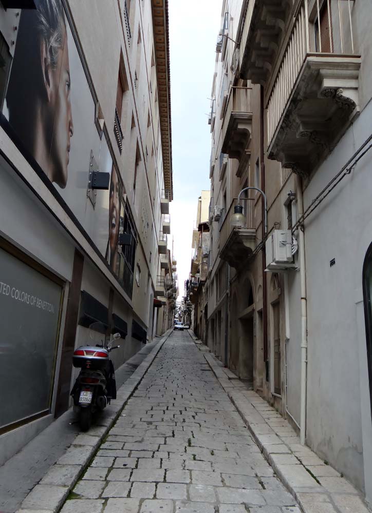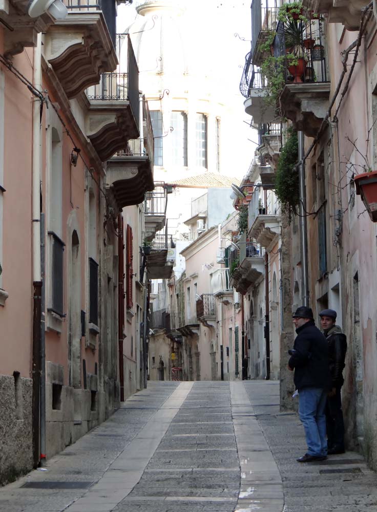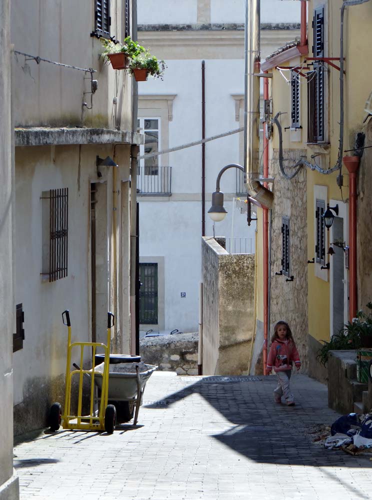 Lost in Modica. Walking back down a blind alley after getting enciphered instructions from a local on how to get somewhere, not sure where. All very confusing.