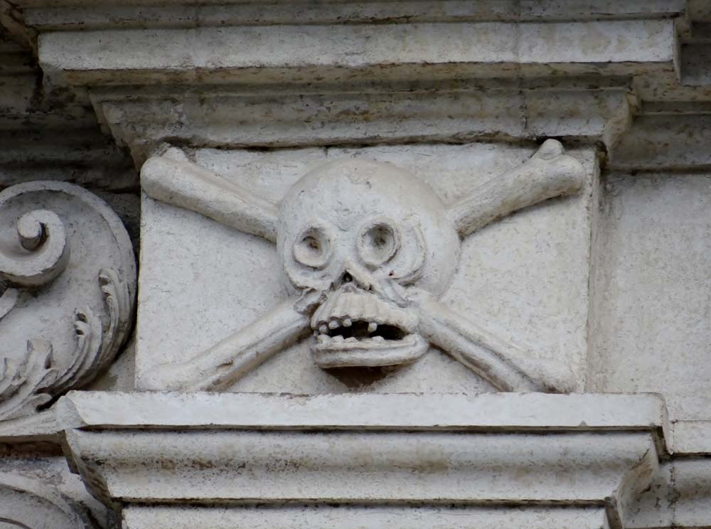 This funny-looking fella, spotted under a balcony, is a peasant, represented among the powerful nobles and merchants as those with nothing to lose. We passed a small gathering of men and women watched by a smaller number of police as they protested silently, we think, over loss of jobs and loss of dignity. They didn’t look very powerful, they looked beaten.