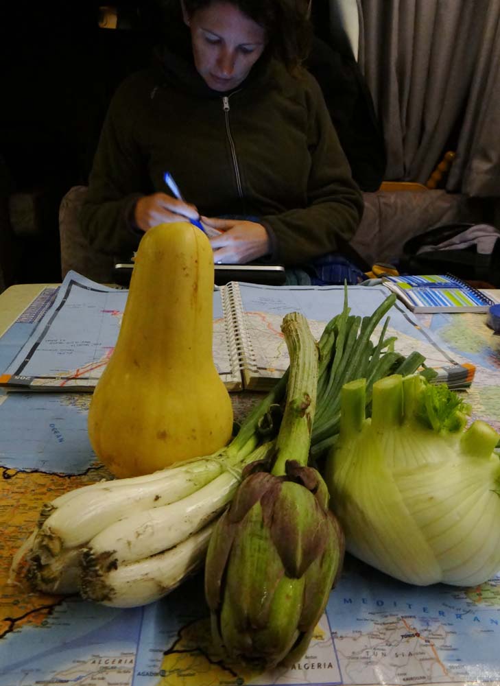 From there to here, via a free motorhome service point (thanks Ragusa!). Food is cooking, the heating is on (it was 21 degrees C today but the nights are cool) and the sea sounds like it’s lapping around Dave’s rubbery rounded feet. It’s been a good day on Planet Buckley.