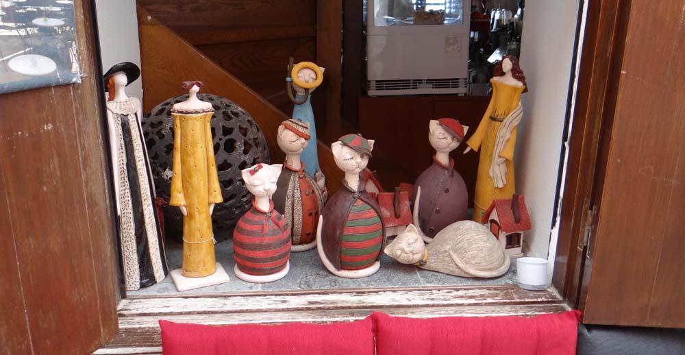 It wasn’t anything like as bad as that, honestly, that was my immediate reaction and it was way over the top. There are a few art shops and eateries, but they all looked pretty tasteful, the pressure to buy just wasn’t there and we were past them in a jiffy. When we returned today, jewellery man was absent from his guard post beneath the gate and I breathed a sign of relief as the main street was all-but empty.