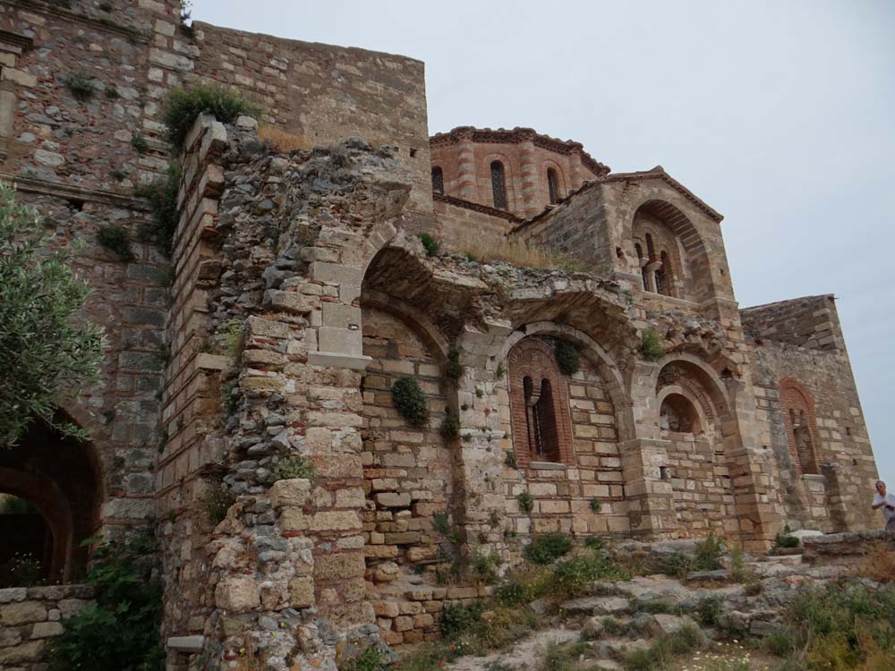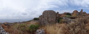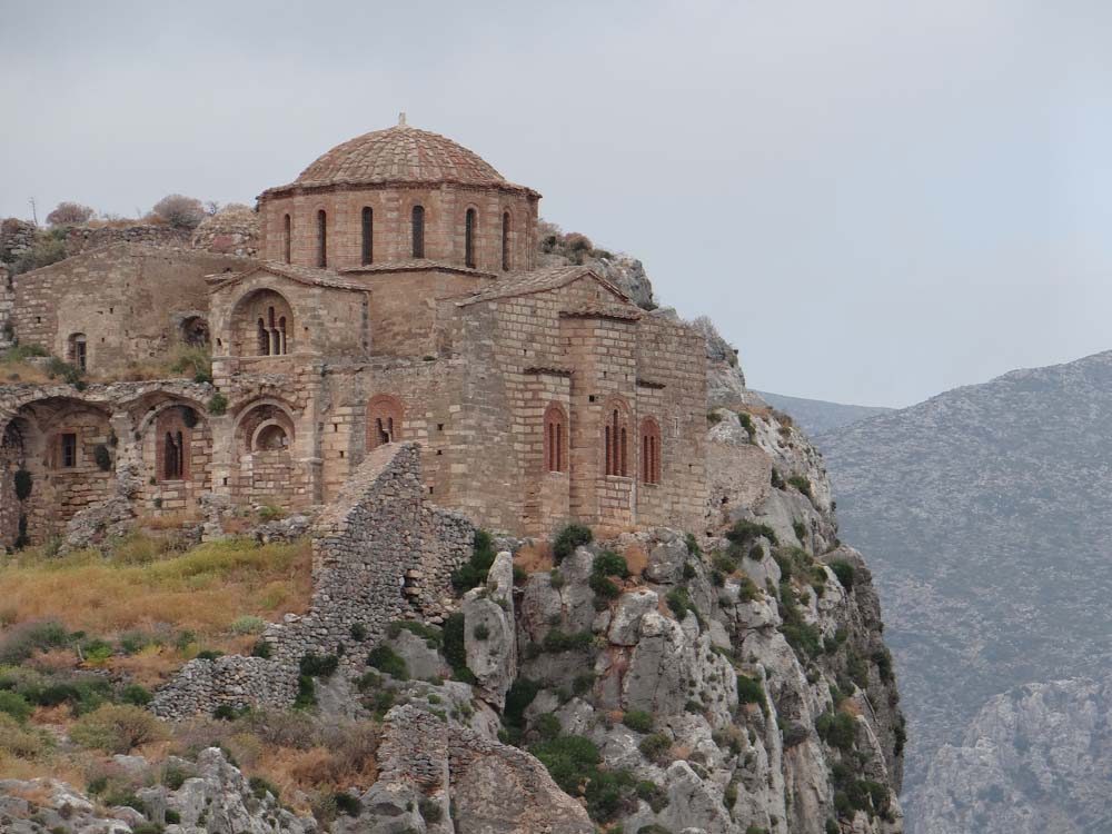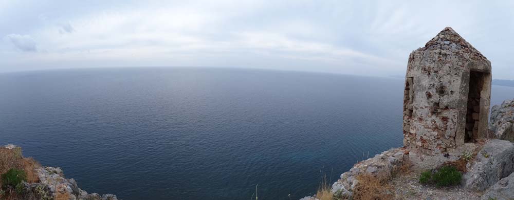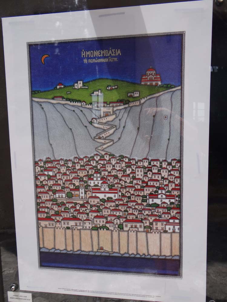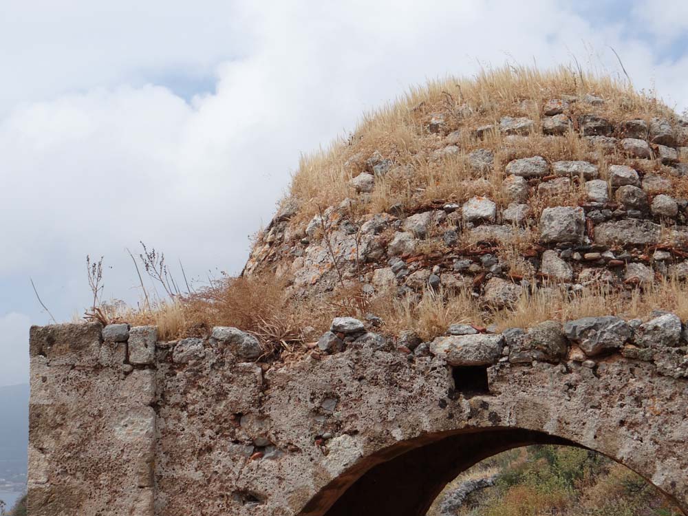Monemvasia’s a kid’s castle of dreams. It’s impregnable, only ever fully conquered by starving the hapless inhabitants into submission. The ‘moat’ is the open ocean, lapping against a rough-footed giant’s tooth of rock, crossable on foot at one point. This causeway (where a load of New Zealand troops were evacuated in the face of advancing Axis troops in 1941) had a wooden removable section and a wall at one end with arrow-slits for fending off opportunist invaders (not much use against Panzer tanks I imagine!). Past this, you’ve about a mile of road which runs around the south of the island. Sounds easy enough but for the fact the by-now irritated inhabitants are likely lobbing rocks and smelly things down on you from above. Next job: get into the lower town. The swines have only gone and built a wall around it. Should you be bothered/have enough cannon fodder left to get through then congratulations, the lower town is yours. Huzzah. Only two jobs left: fight your way up zigzag steps cut into a 100m cliff face, through the gate at the top, through the upper town and tackle the hill-top citadel. You’d have to do all this on foot, maybe on horse-back if you’re crazy, as the tiny mesh of cobbled streets is too small for anything else. Nah, no-one got in by force, siege was the way in, one of which lasted a massive 3 years (by comparison, the unbreakable folks of Sarajevo lasted out for almost 4 years in the 90’s).
