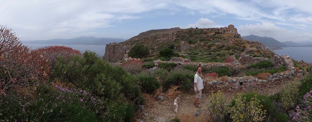 What’s this? Ju? Awake? At 7am? Nope, I’ve no idea what forced this but I’m pretty sure some future Saint might claim it as one of their miracles. Before I knew it I was presented with my daily bowl of Lidl ‘Faux Crunchy Nut Cornflakes’ and ushered out the door. Charlie was still licking the 4% meat dog food from his lips as his paws hit the ground and off we stomped along the km road to the entrance to Monemvasia.