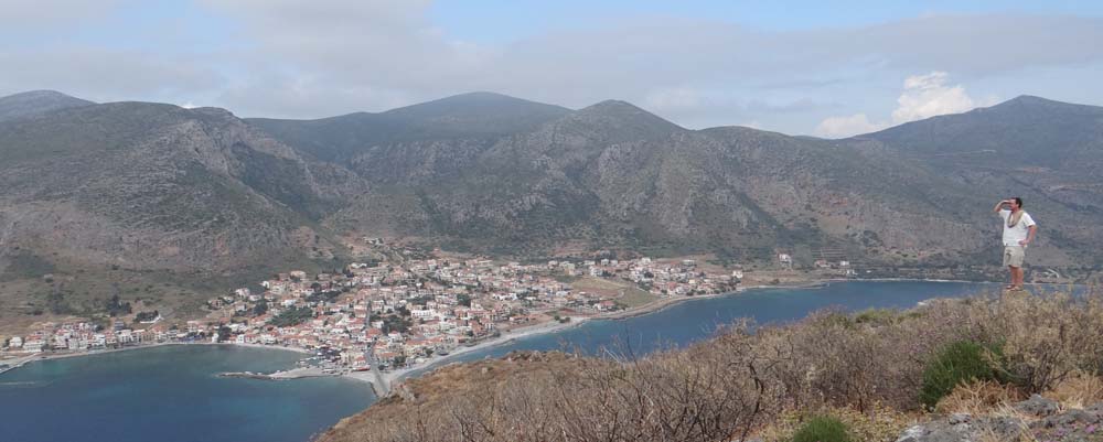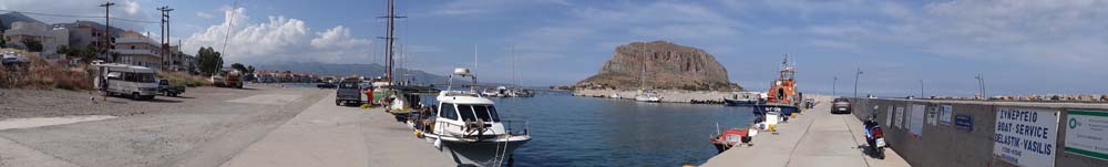 Dave the motorhome has decamped from his spot on the island of Monemvasia to a spot on the mainland at the new sister town of Yefira (N36.68836 E23.03712). Last night we discovered why Monemvasia is called Monemvasia; the name’s derived from a couple of Greek words meaning ‘single entrance’. Yup, there’s just the one way in and out, we were parked right by it, and last night everyone using the causeway passed Dave! Exhaust-less mopeds rivalling Rossi’s motoGP bike for vibration-inducing volume, if not speed, rumbled past in between shuttle bus runs and folks laughing (the cheek of it) at the nearby taverna. No worries for us of course, we were done in and slept OK anyway, but we now understand why everyone, with the exception of a brilliant-white restored VW camper van, shifted over here to where we are now.