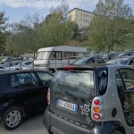 Dave the motorhome has moved, honest he has. He’s now in a gravel car park just a few metres away from the official motorhome sosta – the difference? About 40 steps more into the town and €10 less a night – we make that around 25c a step! We’re here: N43.09575 E11.78807