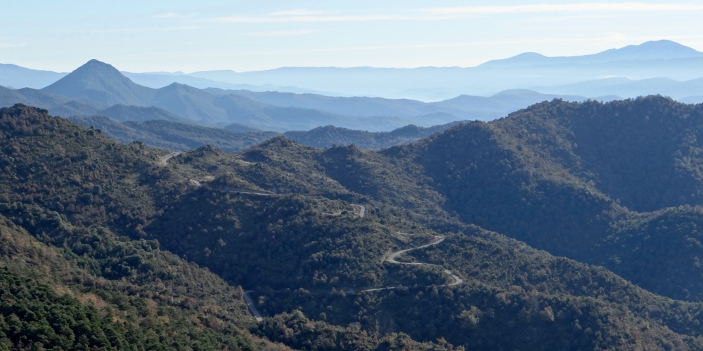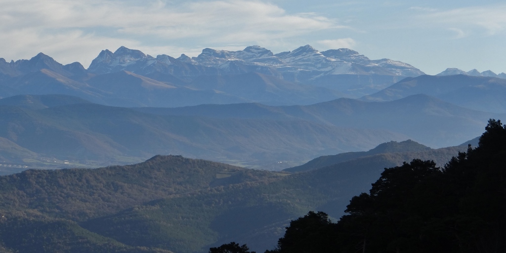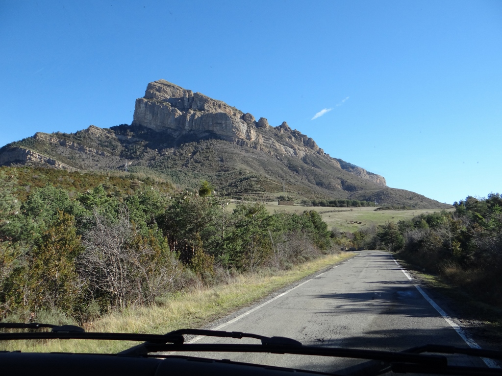 This morning to clear the cobwebs we went for a walk out to the mirador (viewpoint) over the Pyrenees – the sun was shining on the wide range of mountains that we could see and valley between us and them. We need to get over those at some point, so after a walk to another mirador looking out the other way, we set off to get in some more twistie road practice.