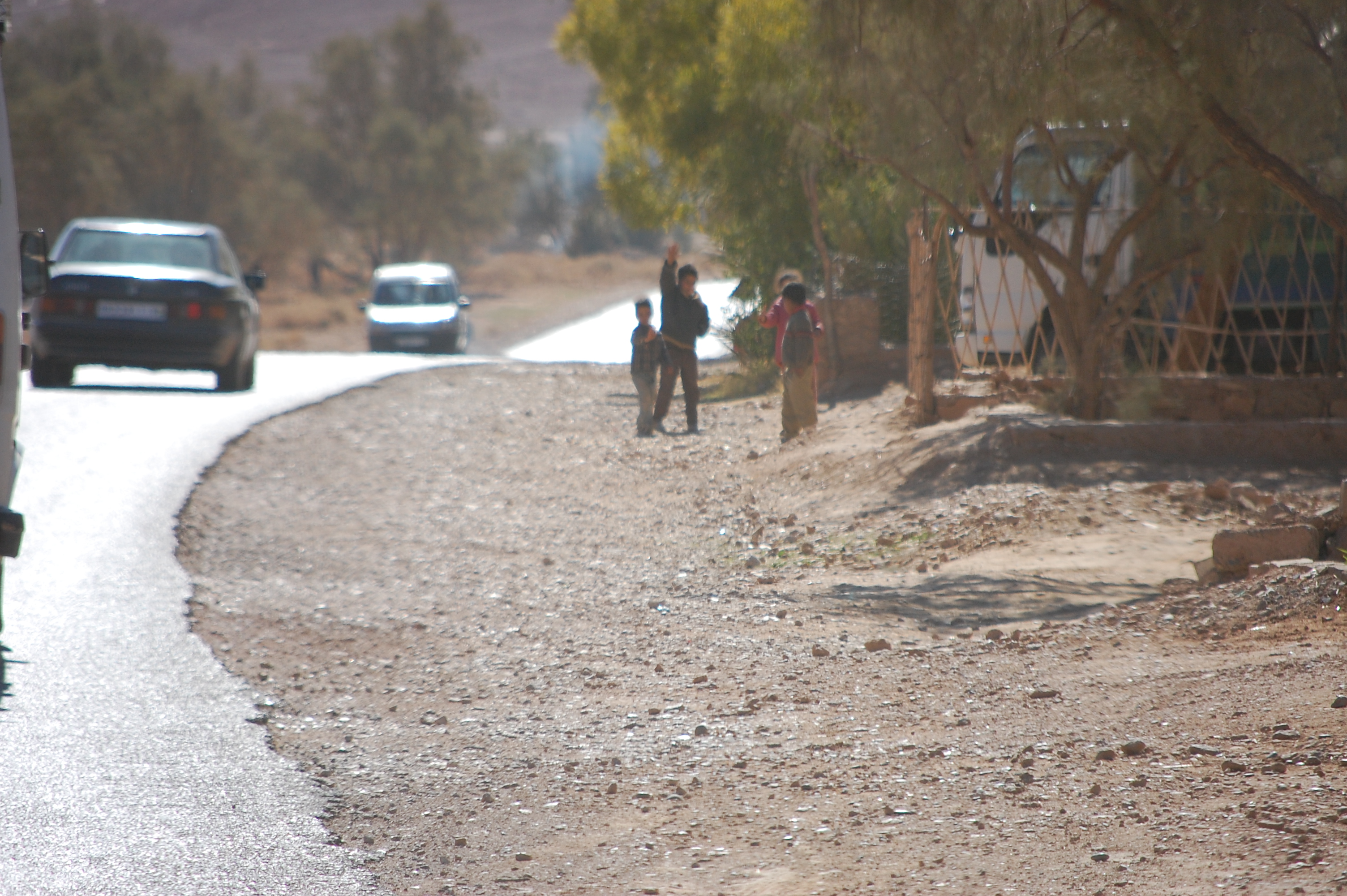 When we arrived in Morocco (only a few days ago), we were less than comfortable with the Moroccan people. They were wandering about the roadside, seemingly wanting to flag us down and rob us at the first opportunity. We’ve since had quite a few encounters with Moroccans. It’s not like Europe, where you can almost spend your entire life without talking to anyone. Here you need to talk to people to (a) get the stuff you want and (b) get them to go away and stop trying to sell their stuff or beg/barter for your stuff. It doesn’t matter if you don’t speak Arabic, French or Berber, if someone wants your shoes, he’ll find a way to tell you, and most people manage a few words of English.