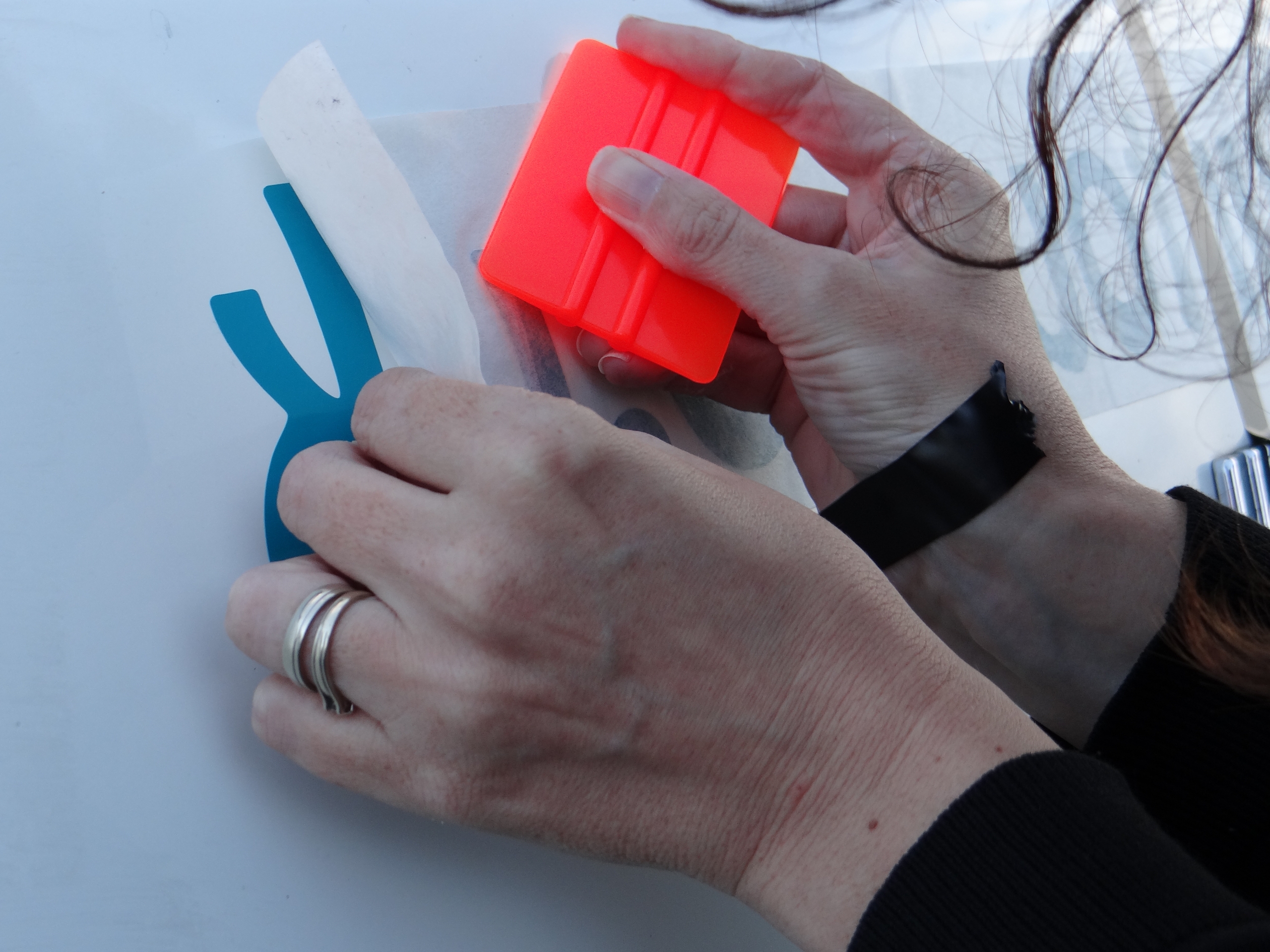 Lakeland do sticky stuff remover, very gentle and does not seem to damage paintwork, oh and you should spray the paintwork with water ( very fine atomiser) then put the vinyl’s on the surface, when you squeegee the vinyl down the water gets squished out and you get no bubbles, also if you get it wrong you can lift it off again, but not once its dry..its on