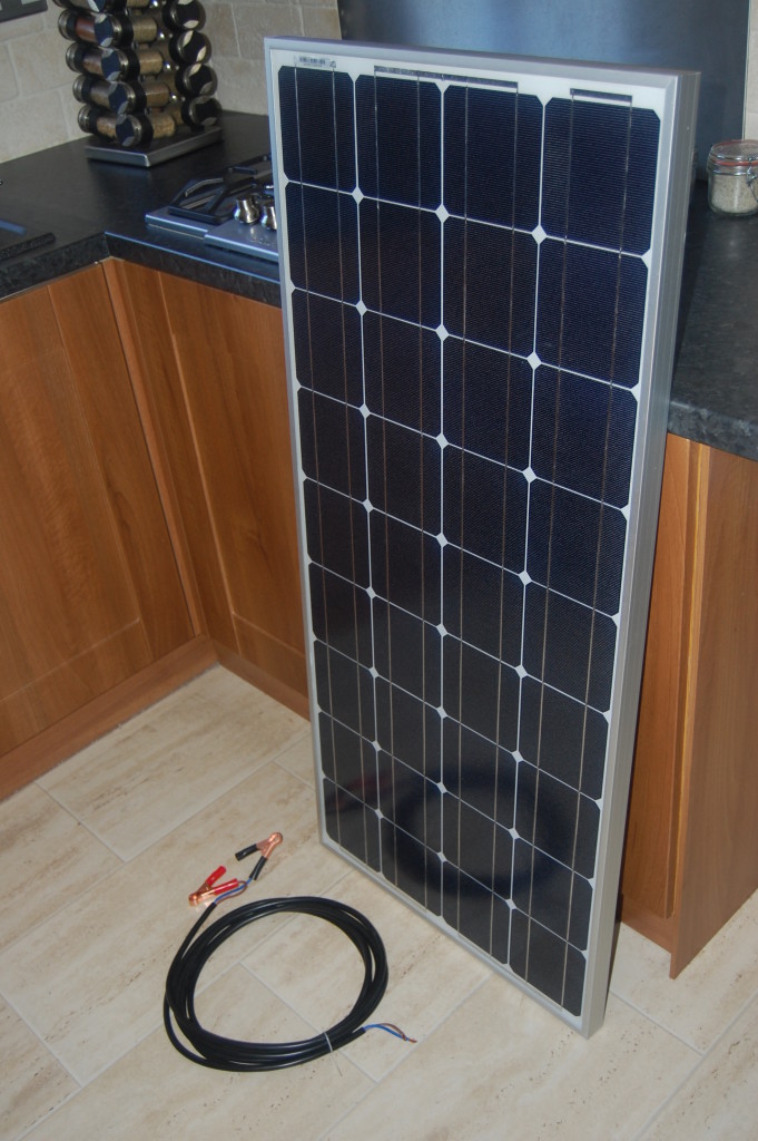 Description of It We self-installed a 100W 12V solar panel kit to our Hymer B544 motorhome. It is connected to a single 100Ah leisure battery and charges it during hours of daylight. We bought the panel as part of a kit, which included the panel, 4 angle brackets and bolts, 5m of cable, a charge regulator and a roof entry gland. It didn’t include any Sikaflex glue, or Sikaflex primer.