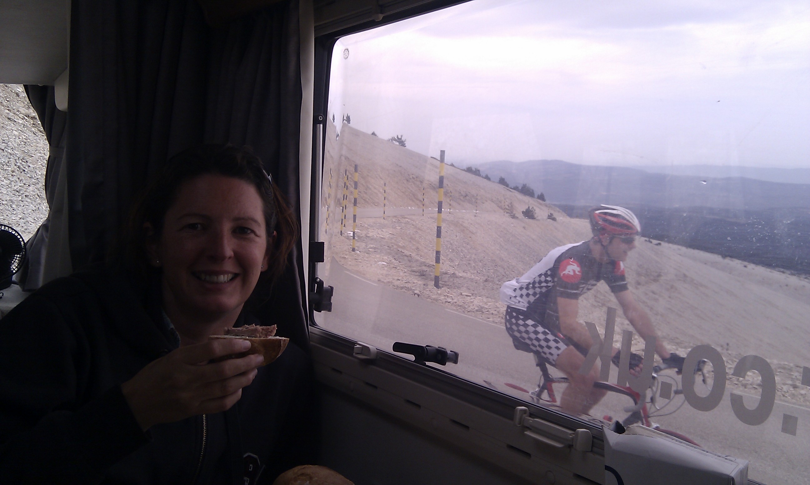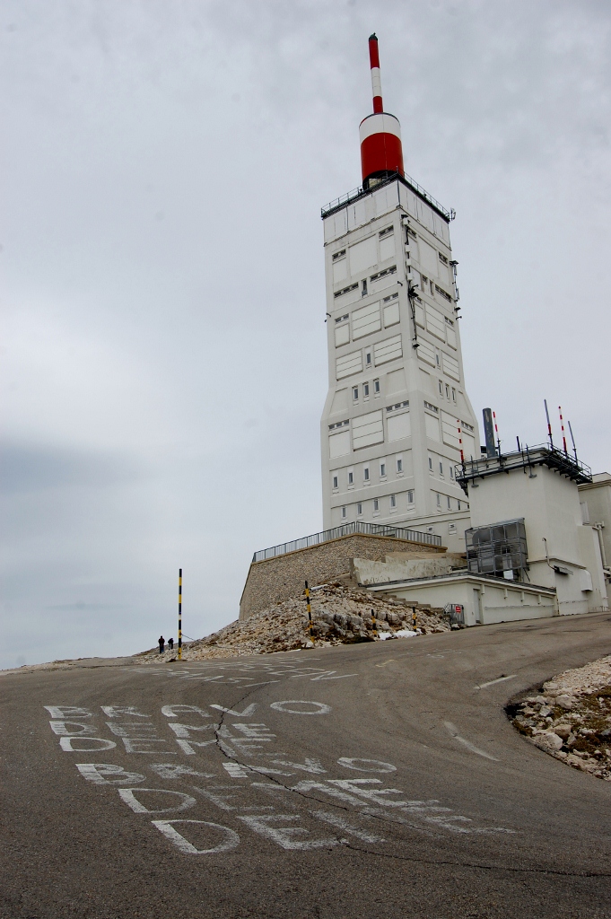 As we reached the top we discovered why it’s called Mont Ventoux – venteux means windy in French and it lived up to it’s name. The view was worth it though.