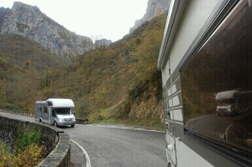 We got up early this morning and drove to Llanes, looking for a garage to check out our suspension creak. No thanks to the TomTom, we found the place, and also found they spoke no English. No problem, good old Google Translation comes to the rescue. What an awesome tool! The garage mechanic got Dave onto the lift, had a good poke round, found the squeak source, sprayed something on it and declared all was fine. All for the princely sum of nothing. Yup, I’m really starting to like Spanish garages!