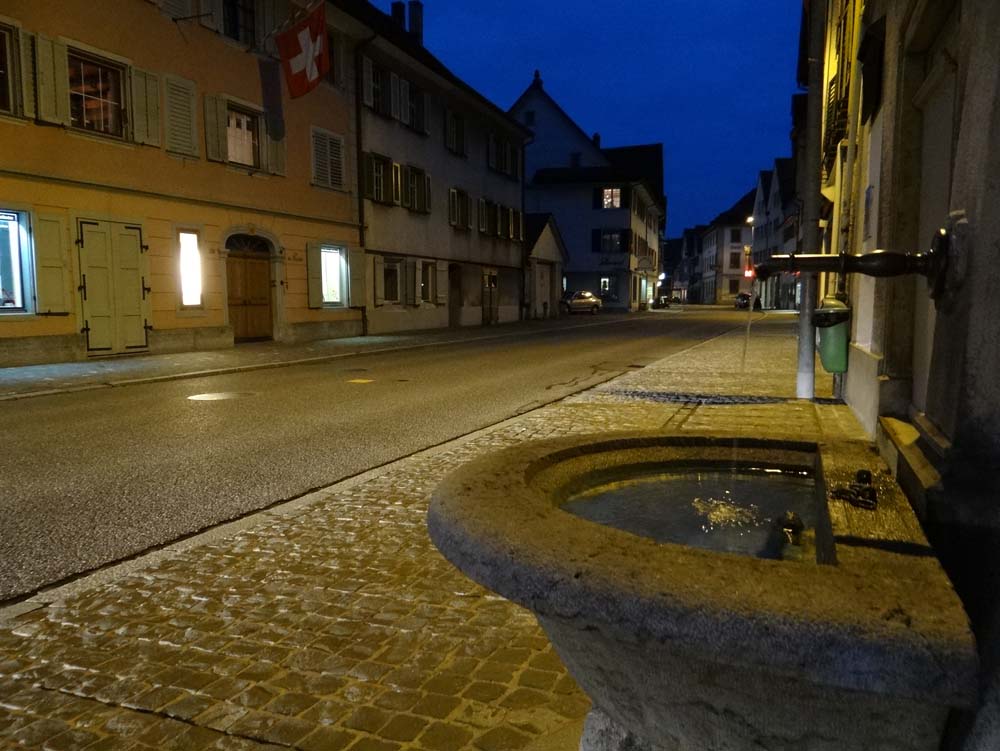 Steckborn: asleep among half timbered houses and a gaggle of drinking water fountains. A part of the town’s defensive wall runs along the car park, all scrubbed-up and new looking.