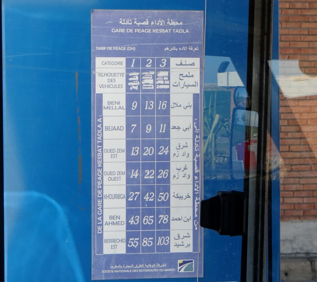 Potential stopover #3: a hotel south of Kasba Tadla which let you stay in their car park for €5 a night. When Phil and Jules arrived the hotel had a new motorway running alongside it, and didn’t look particular quiet or inviting. So onwards and (literally) upwards they went. We ended up bypassing this part of the N8, following some tempting blue signs to a new motorway, which wasn’t on our elderly map. The motorway was all-but empty with signs telling people not to park up for a pic-nic, so fun to bomb down at 120 kph for €1.30. It was less fun after the toll booths when I failed the ‘5 lanes to yourself, can you restrain yourself’ test, this is where I fell foul of the law on the slip road back onto the N8 road.