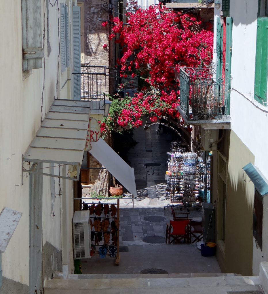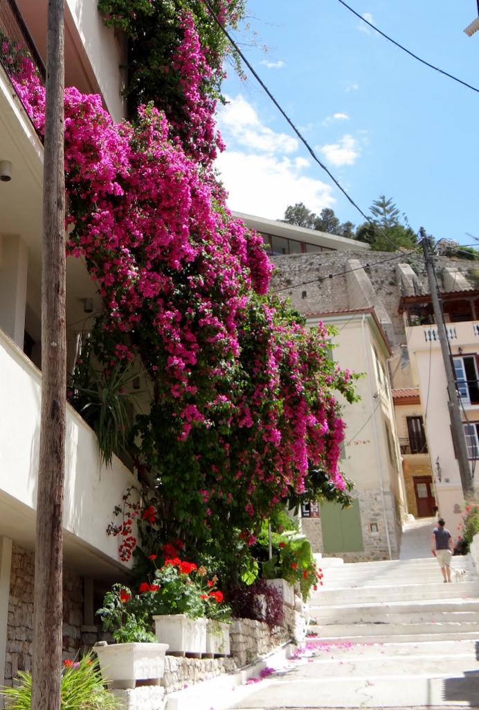 We then headed up the steps into the town and wandered around among narrow alleys, cafes, souvenir shops and tumbling bright pink, red and purple flowers (the name of which my Mum would instantly know, but I sadly don’t).
