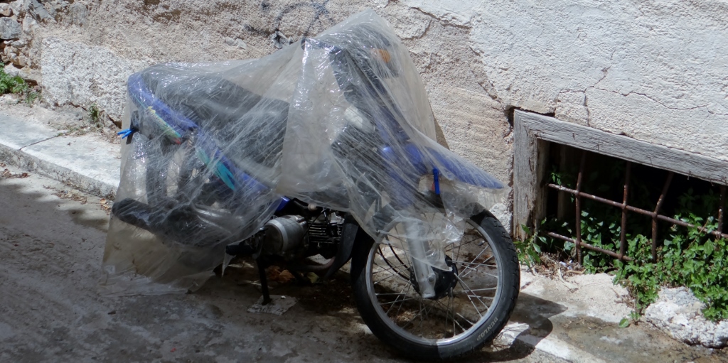 The time flew by and before we knew it we were at Argos – no not the catalogue store, but what claims to be the oldest inhabited town in Greece – meaning we’d missed our short-cut turning to Nafplio. It was easy enough to miss as there weren’t any signs for it, well none that I saw, but going on this slightly more roundabout route meant that we stuck to the main roads, always handy in a Dave-sized vehicle. As we turned south on the road to Nafplio we spotted an ‘AB’ supermarket. Several people had told us that these were reasonably priced local supermarkets and as the spuds we bought at a market a few weeks ago finally went mouldy and in the bin last night, we nipped in for supplies. Three supermarkets in as many days, it’s a wonder Dave actually moves!