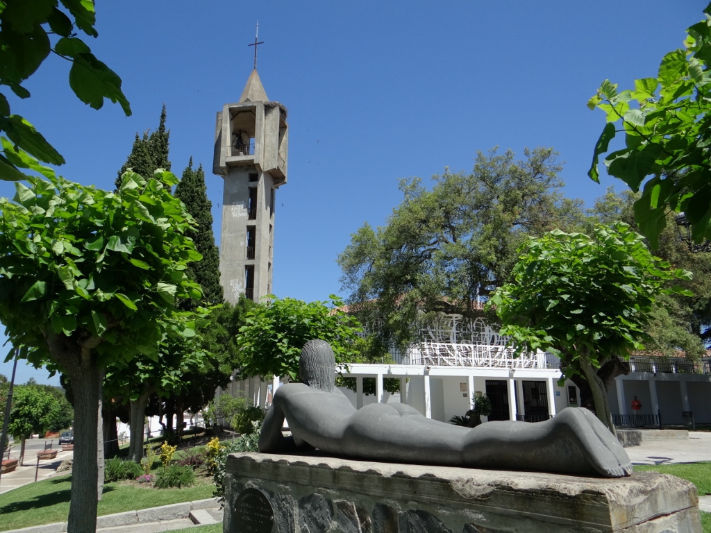We found a tiled sign showing us where the old town is, and as it’s seven kilometres away and the temperature is in the high twenties, we decided not to visit. According to the internet the derelict state of the village attracted a number of Germans who took over the empty houses and built temporary dwellings outside the walls. It now houses over three thousand people and is a bit of a hippy colony and tourist town.