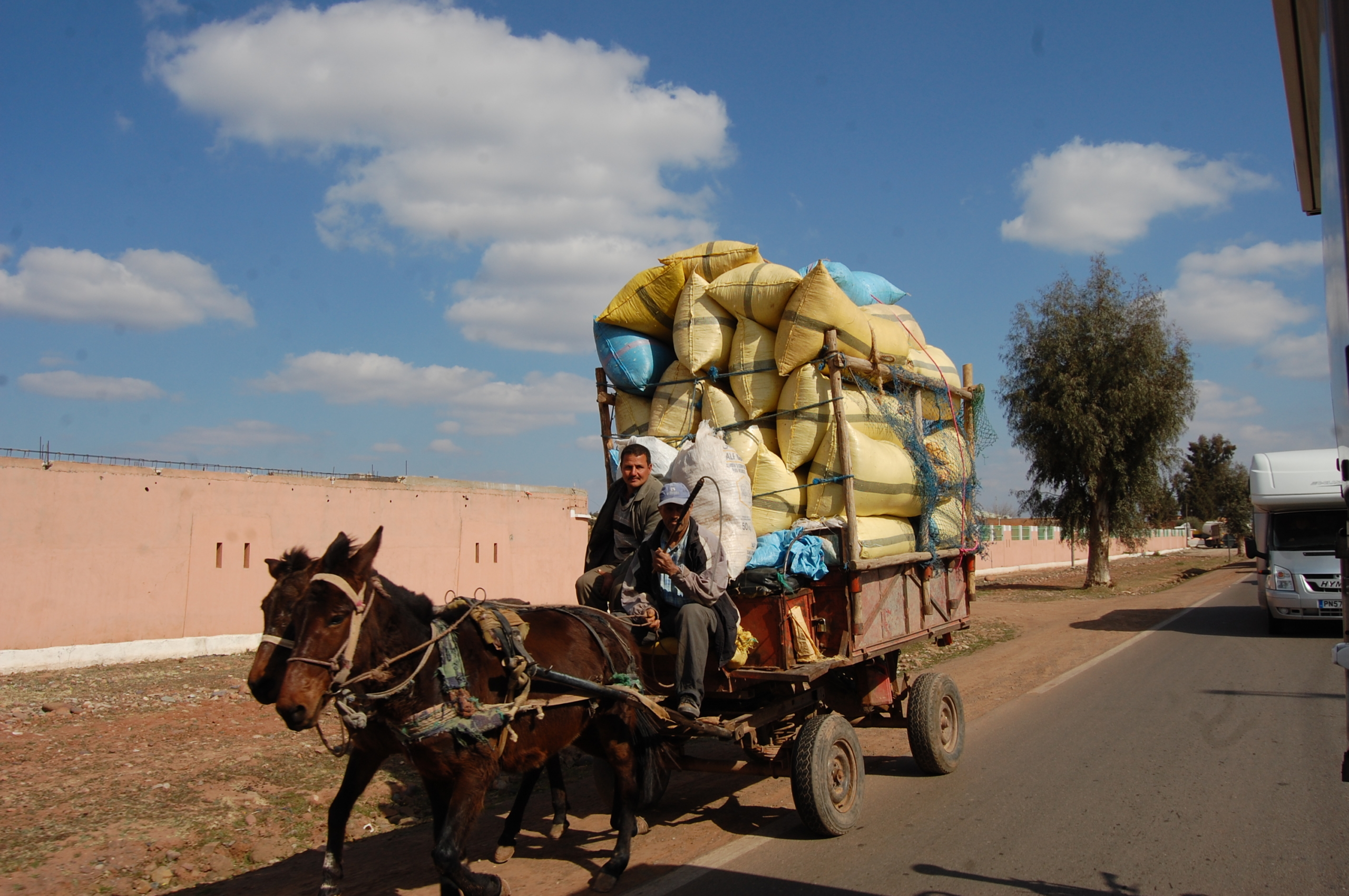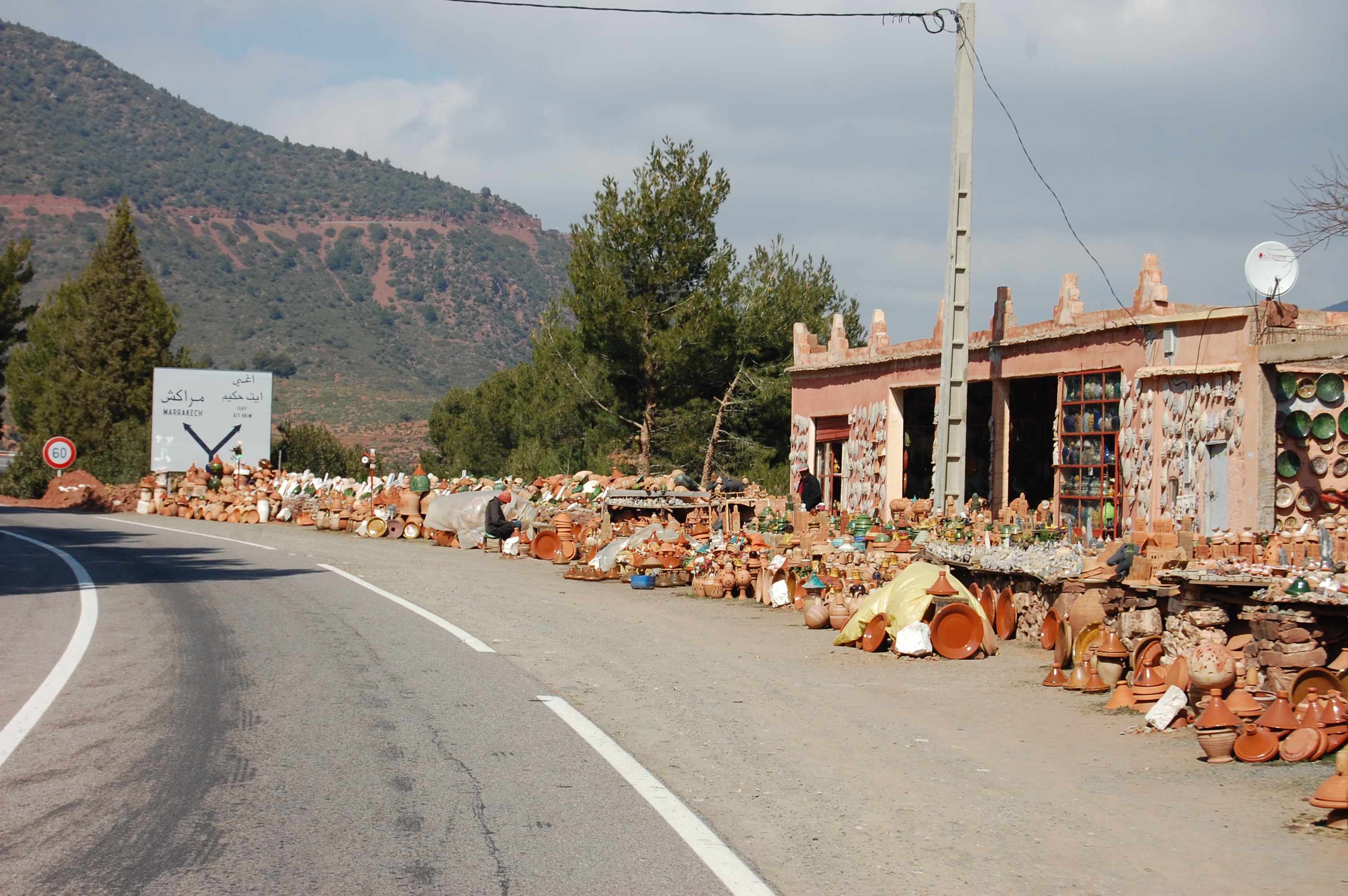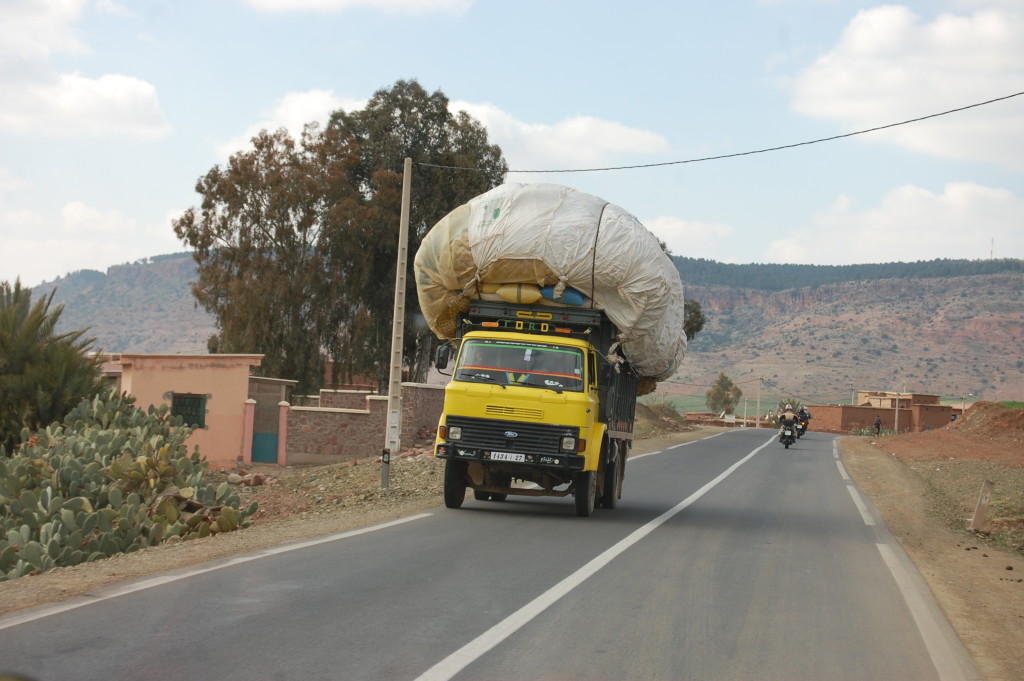 This morning we were up bright and early – well we got on the road around 10am, as we knew it would be a long driving day. When we checked the route last night satnav said it would take 6 1/2 hours! She’d revised her estimate this morning to 3 1/2, but we knew it would be more like 4 1/2. We were heading over the High Atlas Mountains to Marrakech (we’ve been spelling it with a sh at the end, but map and road signs say it’s ch, so we’re going native!).
