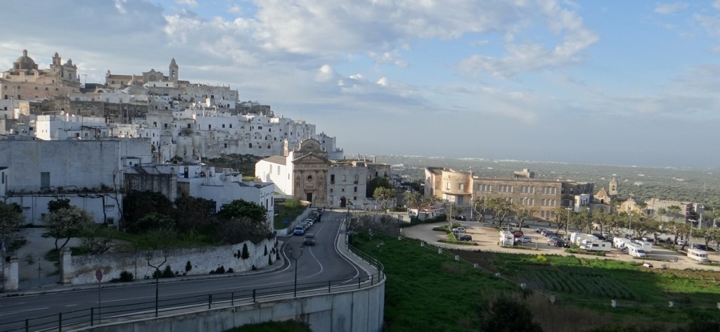 Our next destination needed to have one thing, or at least for there to be one thing on the way to it – somewhere to empty the loo! Checking an Italian website I spotted that Ostuni has a service point in its car park, not only that but out of peak season (ie now) it’s free. What sealed the deal was that Ostuni was mentioned as a good place to see in our Rough Guide – a course was set, via the nearest Lidl, it was time for a country change sized stock up.