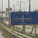 Entering a small village a lady whose weathered face was surrounded by a headscarf held up a bucket to show us the eggs she had for sale. She had been sitting on a chair by the roadside in the rain waiting for traffic to pass. Our fridge already had a full box of eggs in it, we felt guilty for not stopping but we really didn’t need any. It took a couple of hours to reach the village and as we entered it a flat-bed truck approached us flashing its lights, followed by a flock of sheep in three across formation. The Greeks really seem to have mastered motorised sheep herding.