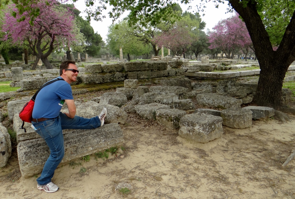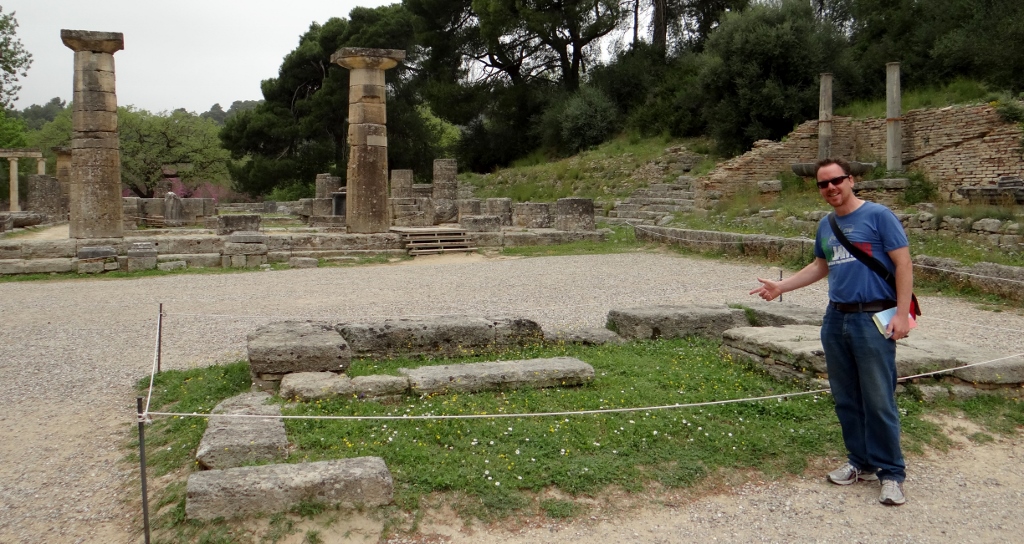 Above us the skies darkened and thunder rumbled. Zeus held onto his lightning bolts for today and we got away with a very light soaking, and it was t-shirt temperatures (just). After tracking down the area where they light the Olympic flame for each games (using a parabolic mirror and some sunshine – it wasn’t going to happen with today’s weather), we headed over to the archaeological museum.