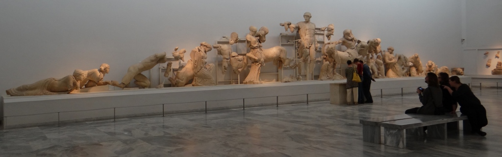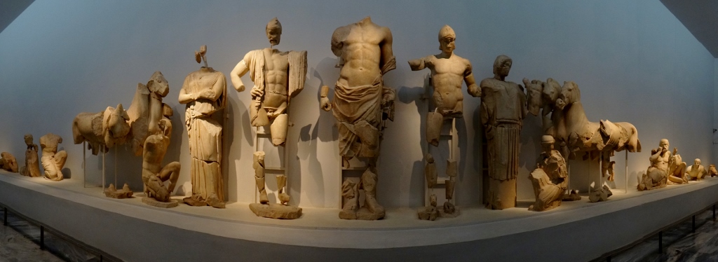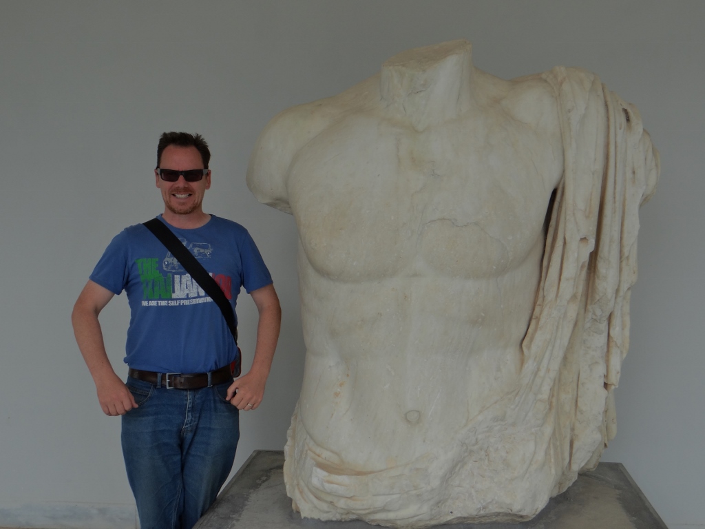 I have to admit, Jay had to twist my arm to buy the combined ticket for the site and museum. We’ve been to so many museums we must have seen every single terracotta pot ever made by the Greeks and Romans. But once we were inside I’m glad my arm was twisted. We wandered through the rooms amazed by either the completeness, the detail, the sheer number of the huge size of the exhibits. Rooms were filled with pots (of course), bronze statues, marble statues, jewellery, armour and lots more. It complemented the site visit perfectly as we had already seen where the things used to stand, and now we could view them in close detail.