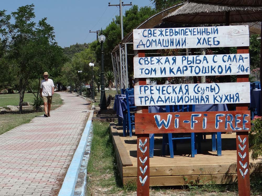 The next thing we noticed was the number of Serbian and Bulgarian cars, about on a par with the number of Greeks, with the odd Czech, Romanian and Russian making up the numbers. Toroni’s clearly within budget and range for folks to nip down here, maybe avoiding the Black Sea, which we’ve been advised is developed to death.