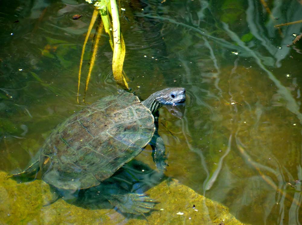 If you come to Toroni, look out for Turtle River. It was packed with them. I guessed 100, Ju went for 40, I countered with 200. There were loads of ’em, leaping like crocs into the water when they spotted us.