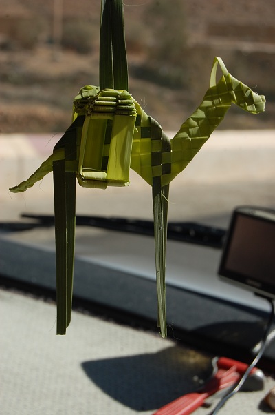 of a plaited palm leaf camel hanging from the rear view mirror, 10Dh and two