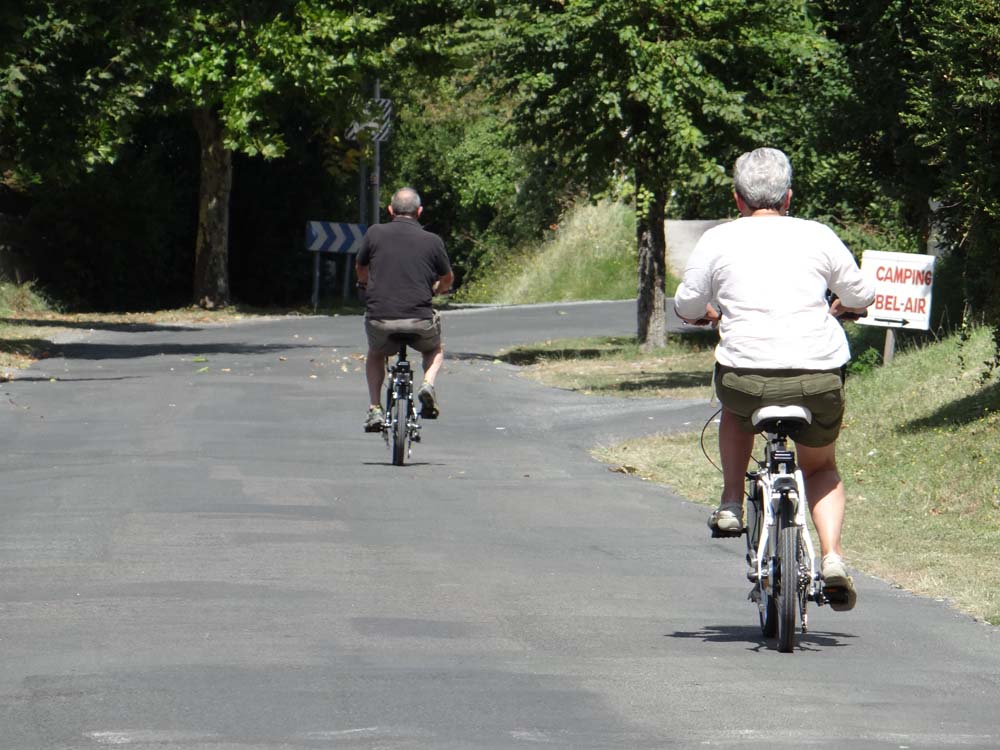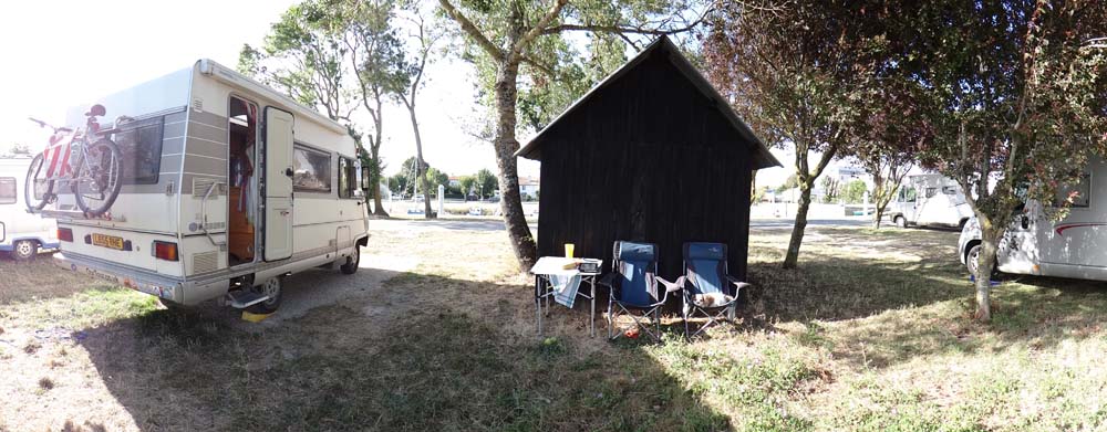 Dave the motorhome’s still in the aire at Mortagne-sur-Gironde, shuffled a few feet to one side this morning at the request of the local aire manager in order to get more motorhomes in here (N45.47505 W0.79667). It’s €7.50 a night, which includes electricity (there are loads of hook-up points so no fighting for one), water and, to our surprise, decent WiFi, hurray! We’ve also popped his big yellow ramps under the back wheels, as we felt like we were falling out of bed all last night.