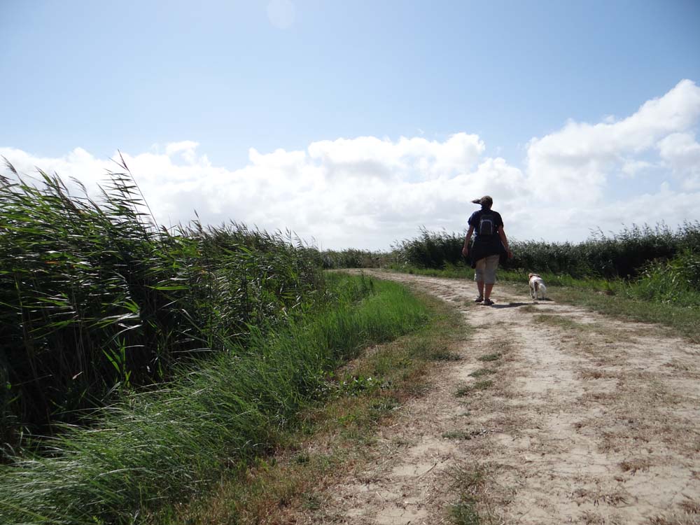 English voices rang out around the viewing platform, there are a few few of us Anglo-Saxons in these parts it would seem. Checking prices in the estate agent windows, they’re either well off or on holiday, or both. The local tourist info office is well geared up for us Anglais too, handing over leaflets in English for donkey rides and the like. We followed the advice on one of ’em for an easy mile amble through the boatyard to the estuary beyond, all mud and reeds.