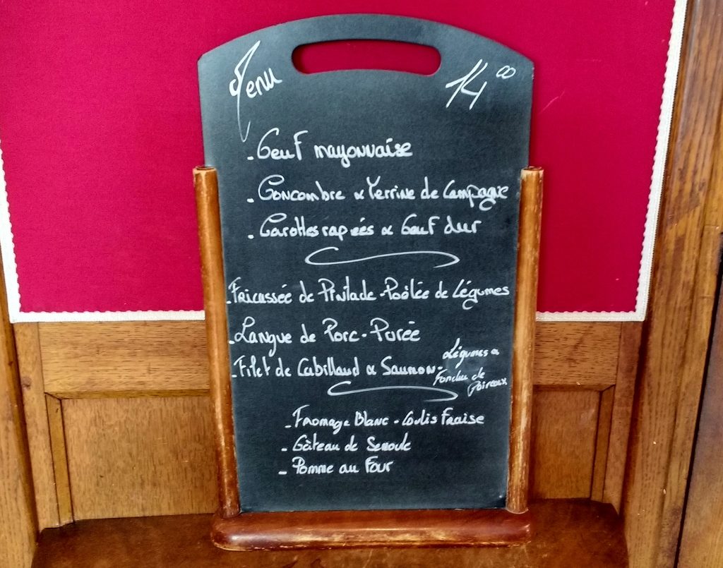 We casually wandered around a bit longer and arrived to find the lunch rush in full flow. Have we reserved? asked the busy waitress, err no, as we’d figured the place would be empty on a Thursday afternoon. With a bit of a French ‘humpf’ she told us to follow her and sat plonked the chalkboard menu down on the only free table left in the place. We were in.