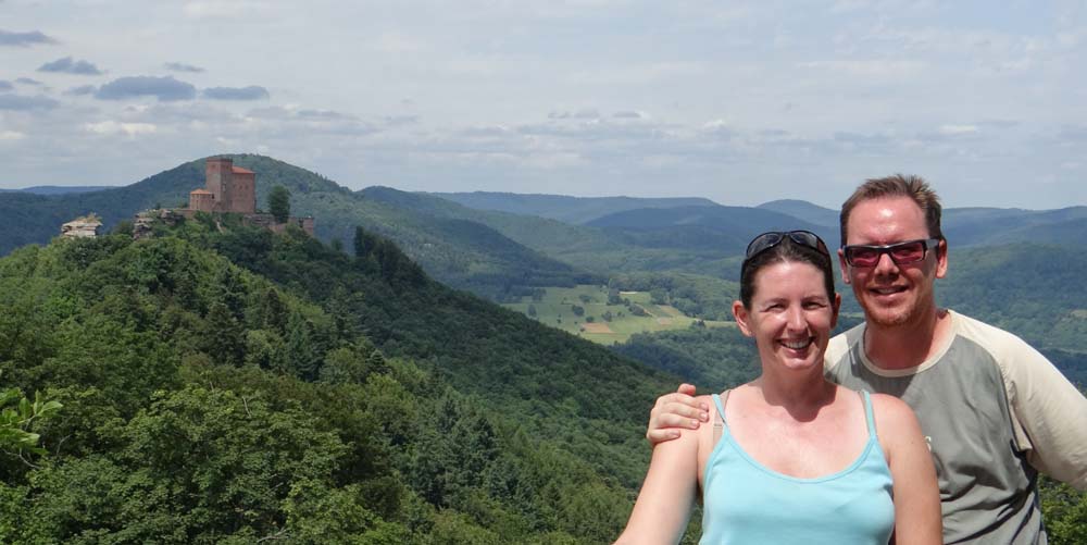 Last night we slept like drunken logs, after all we were rather drunken after a BBQ with our friend Jacqui and Marc – we had a lot of catching up to do as we hadn’t seen them for ages. This morning there was a stack of empty bottles and several thick heads as we met for breakfast. A plan formed to take a long walk up to the nearby Trifels Castle to admire the many viewpoints on the way and take a look at the German equivalent to the crown jewels – albeit copies from a bygone era.
