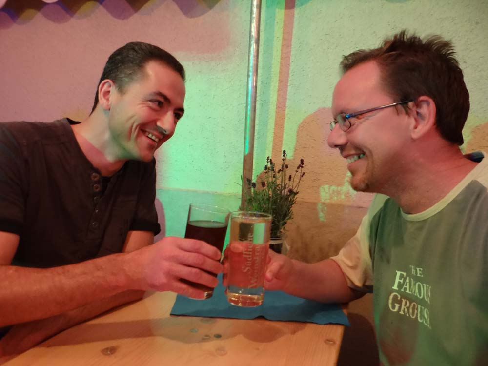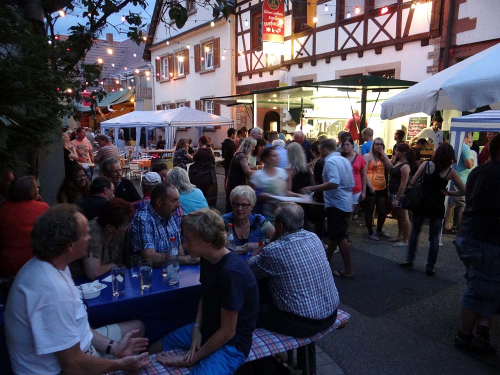 The surrounding area was filled with vineyards and the centre of the village was closed off to make space to the festival. We found a place to park and headed in. A table in one of the local Weingut (which I am assured is a collection of buildings and not a wine version of a beer belly) and ordered in some wine, and some food and more wine – and so the evening went on.