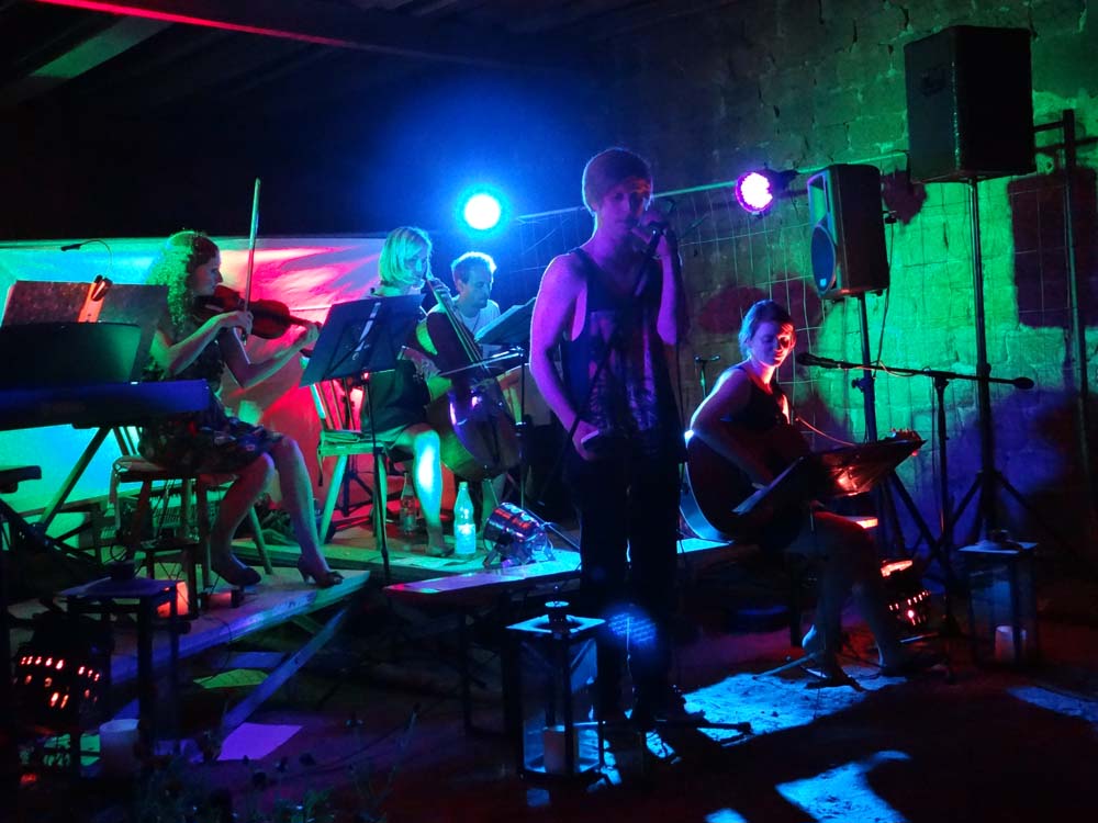 We found a space in the Philip Heinz music tent where a great band called Acoustic Vibration were playing loads of hits with the accompaniment of violins and cellos, it was great. And we weren’t the only ones to think so, a good few people were doing some whacky dancing by the stage.