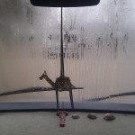 At the entrance to the site we found the grey water point and commenced emptying. A car pulls up and the driver looks at us. He opens his boot and takes out a bucket and sponge and in a nearby hose starts to wash his car. More people walk past staring at us when finally it dawns. We’re not over the grey water point, we’re in the car wash. Doh. We give Dave a wash anyway, losing the combined filth of deserts, mountains, beaches and my greasy paws.