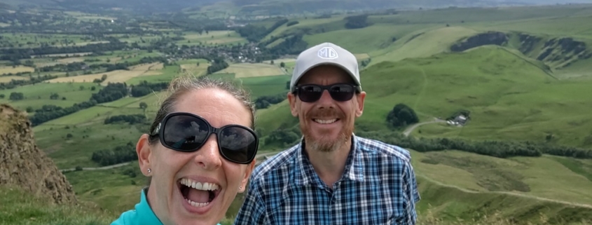 Today our legs ache even more so we’ve stuck to a short walk, all of 4 miles from the campsite up Mam Tor to the south and back. The path was pretty quiet all the way until we rounded the bottom of the Tor onto the paved route, which was suddenly packed! The hill’s iconic and easy to walk up, attracting lots of folks for the views from the remains of a bronze/iron age fort at the wind-swept summit. One side of the hill has long-since collapsed, shedding material onto smaller hills below, explaining the name Mam Tor: Mother Hill (it’s also called the Shivering Mountain). Below lies a collection of mines and caverns including the famous Blue John Cavern, named for the 250 million-year-old blue mineral it produces. To the east and west we could see the ridge paths extending off into the distance, with just a few hikers on them. They looked tempting, but our legs were aching and we’ve retreated to the van to eat and rest up ready for the next couple of days.