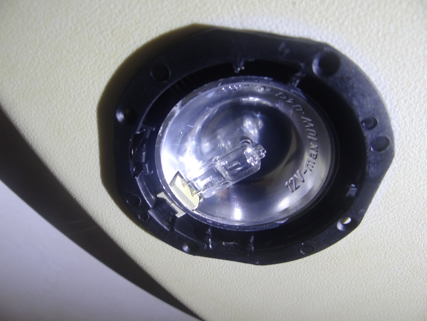 To top off the great news on the 12V system, John (from Hetty the Hymer) had a couple of spare G4 LED bulbs which he generously gave us. It took about 30 seconds to whip out the old ones and pop in the LEDs. They work beautifully. Bright, instant light, generate no heat and use maybe 1/10th of the power, if that. The rest of the bulbs in here will get swapped out once we’re back in Blighty, ready for next year’s frivolities.