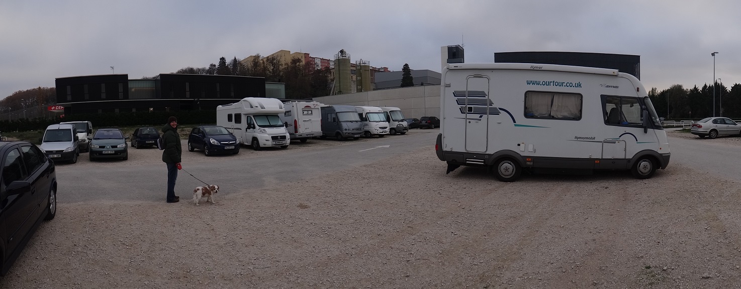 Zagan the motorhome spent last night in a gravel car park with Bessie (Kathryn and Alec’s Bessacarr), within sight of the stone walls of the great bull-running city of Pamplona (N42.82102, W1.65645). Ooooeee it’s been a cracking and fun time the past couple of days, so even though we’ve moved to Sos del Rey Católico, we’ll create another blog post for our time here – this one’s all bull).