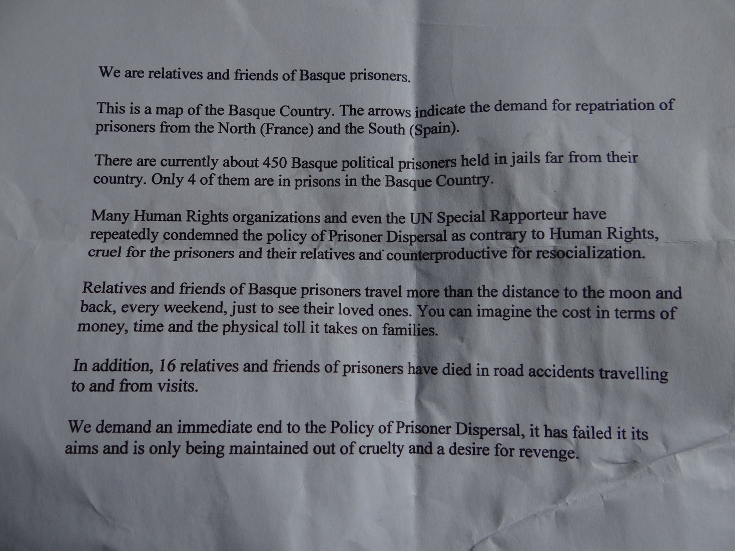 At a small demonstration in Pamplona I asked why they were there. The chap rummaged in his backpack and gave me this explanation.
