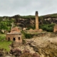 These included kilns and furnaces, and precipitation ponds into which ore was dropped with scrap iron, resulting in a copper-rich sludge at the bottom. The ponds are still there, along with ruins of buildings and a windmill used to help pump water which stands as a landmark above it all.