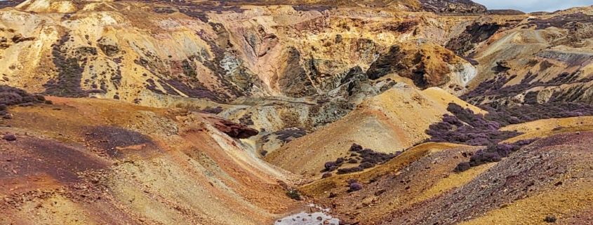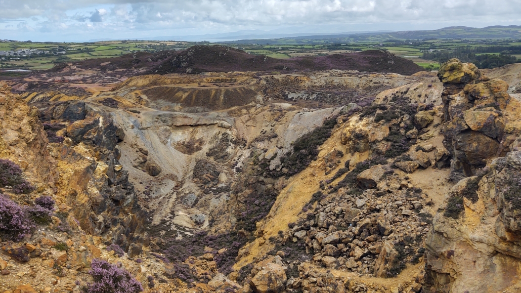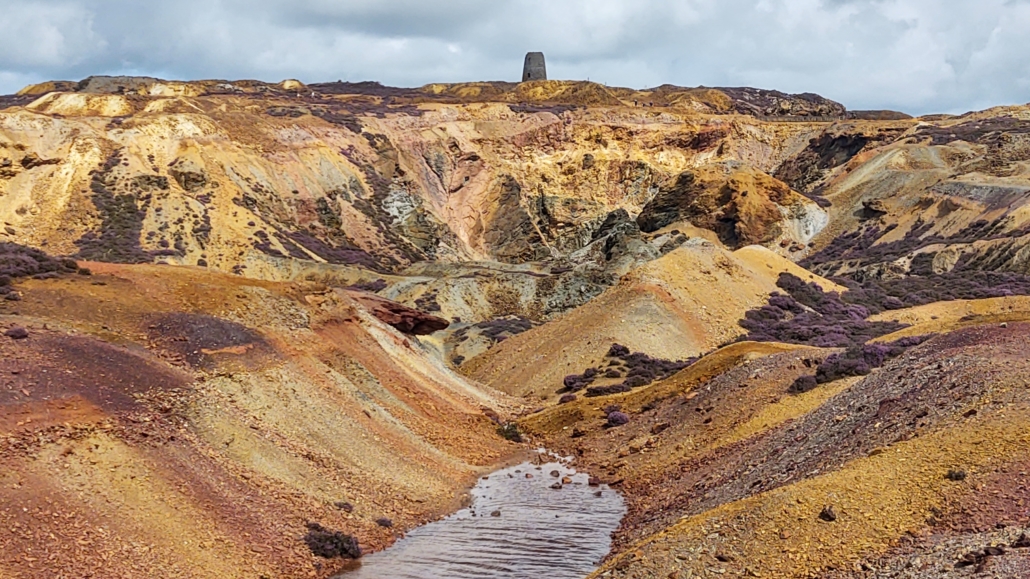 The mountain is a mountain in name only. It’s only 147m high, so falls well short of the 610m height requirement. It’s a big hill though. At least it was, until the miners got at it starting in the 1860s and tore it apart for the copper, sulphur and other useful stuff locked in the rock. It closed in 1936 and today there’s no noise or fumes to detract from the incredible Mars-scape left behind. Great swathes of multi-coloured rock stand piled around huge excavations in the ground. If it wasn’t for the purple heather blossoming across the site (the acidity of the rock means nothing else grows), and we could have easily imagined ourselves on another world.