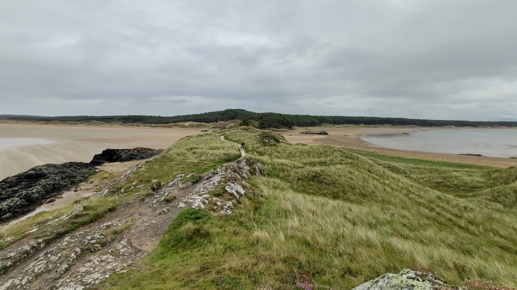 Signs near the car park show the dunes naturally shift back and forth over the decades, so maybe the trees weren’t necessary. Whatever’s the case, the area clearly attracts a lot of visitors with its network of forest trails and broad beach looking across the sea to the mountains of Snowdonia and the Llŷn Peninsula.