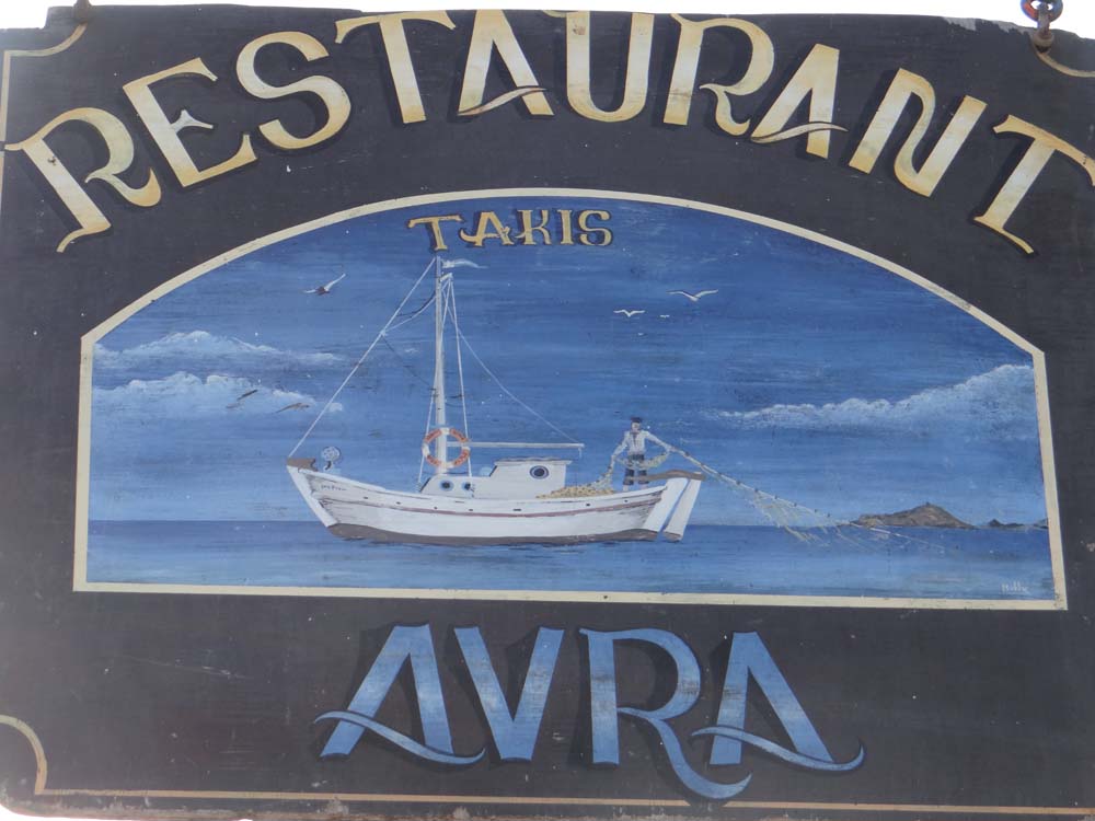 Time to head out for tea. All of the 3 or 4 tavernas here look excellent, traditional, welcoming. No idea how we’ll pick one, by the artwork maybe?