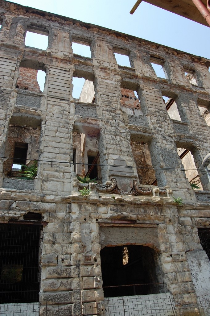 The Stari Most bridge itself was, well a bridge – pretty enough with very slippy well worn stones underfoot – I can’t help but be reminded that it’s new though, a replacement, a symbol of peace and war. We walked over it into the next gauntlet of tourist shops, but ducked out as soon as we could and headed up some steps to a main road. Here bullet holes could be seen in every wall that had not been re-rendered. Brick skeletons buildings would reveal a hint of their former self – a coat of arms, carving, tiles on a wall. In a Mosque all the graves were from the nineties – and there were a lot of them.